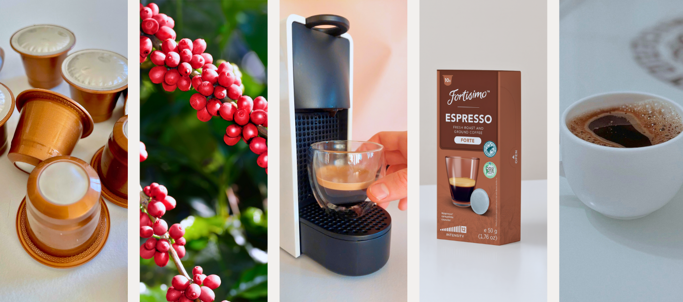 Empezamos por el café —porque sabemos que, como cocinar, disfrutar un buen espresso también es parte de tu rutina— con cápsulas de café belga compatibles con Nespresso®*, naturales, certificadas y con la misma excelente relación precio–calidad que nos distingue.